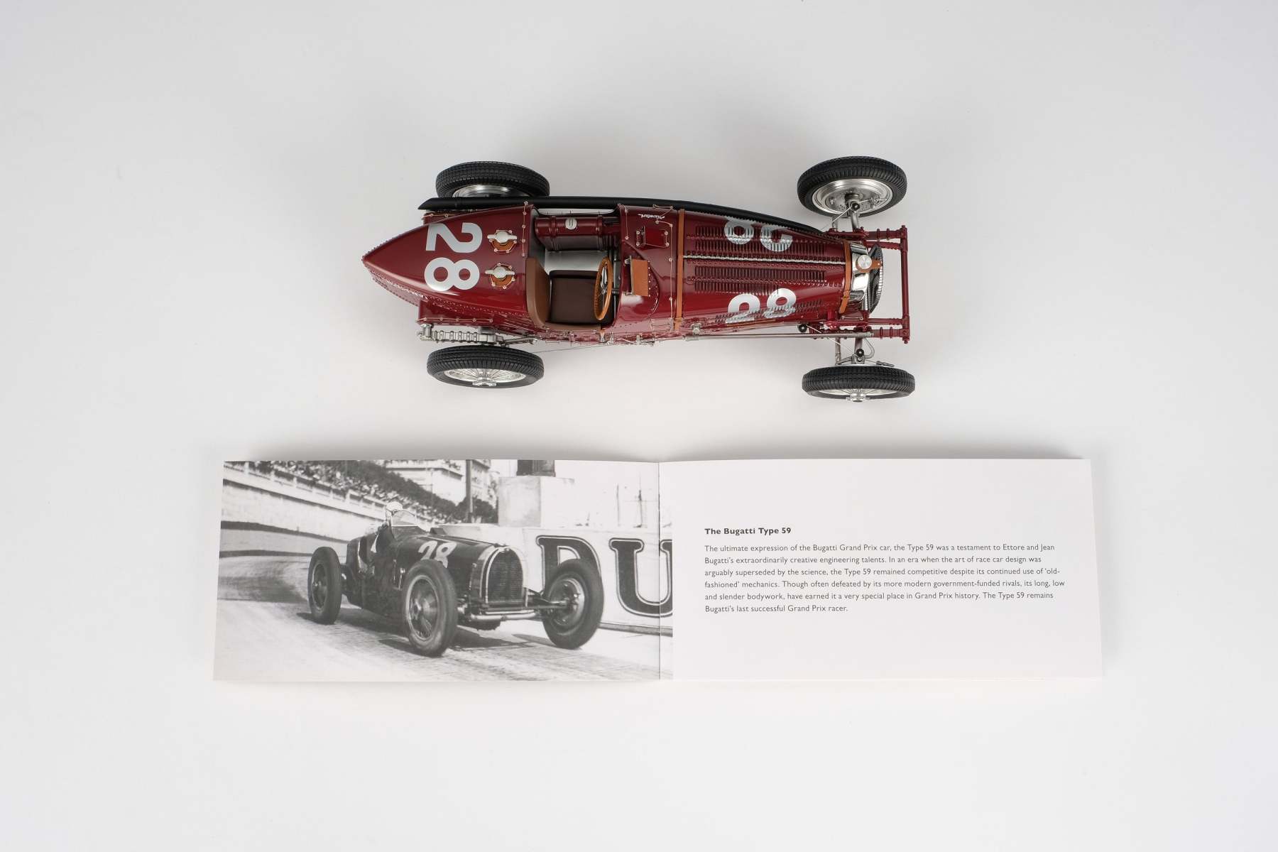 To create the Type 59, we used our supremely accurate digital scanning on chassis 59122, kindly allowed by its current owner Ralph Lauren, and, with the cooperation of Bugatti, developed this stunningly detailed and precise replica at scale. This fine scale model has been handcrafted and finished in our workshops with the co-operation and assistance of the manufacturer regarding original finishes, materials, archive imagery and drawings. Furthermore, the prototype model has undergone detailed scrutiny by the manufacturer’s engineering and design teams to ensure complete accuracy of representation.