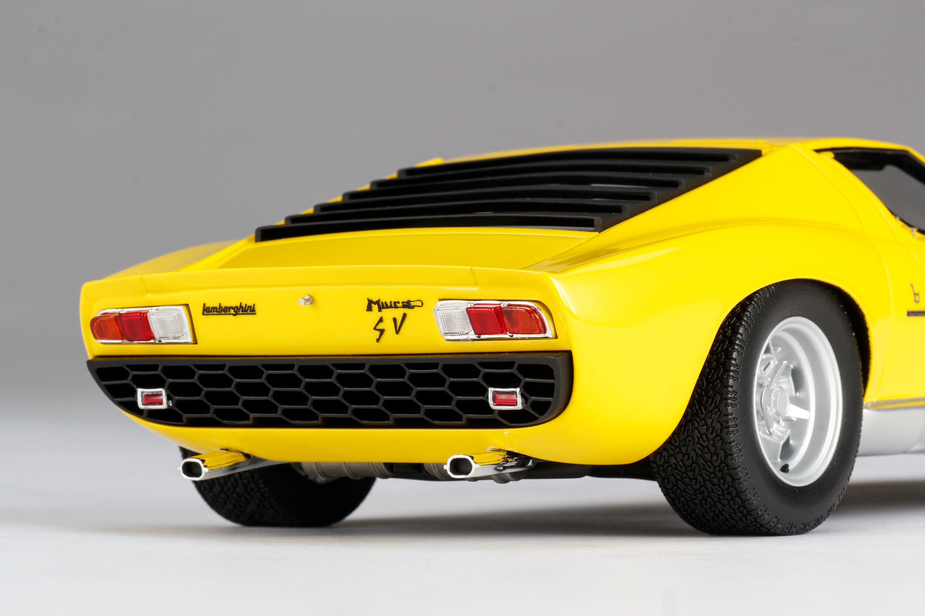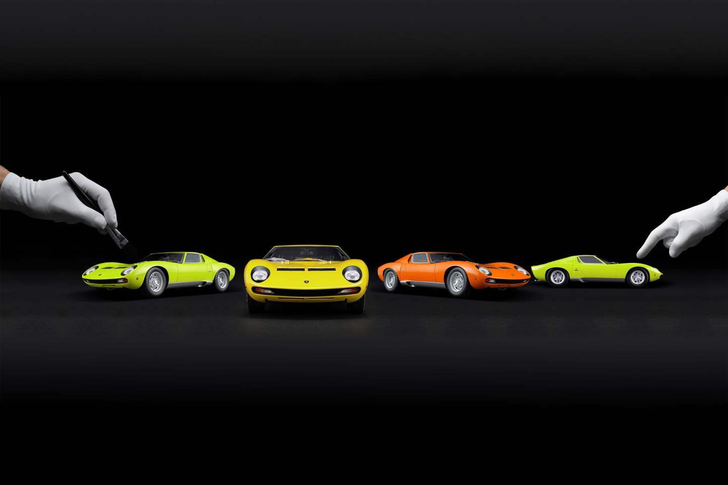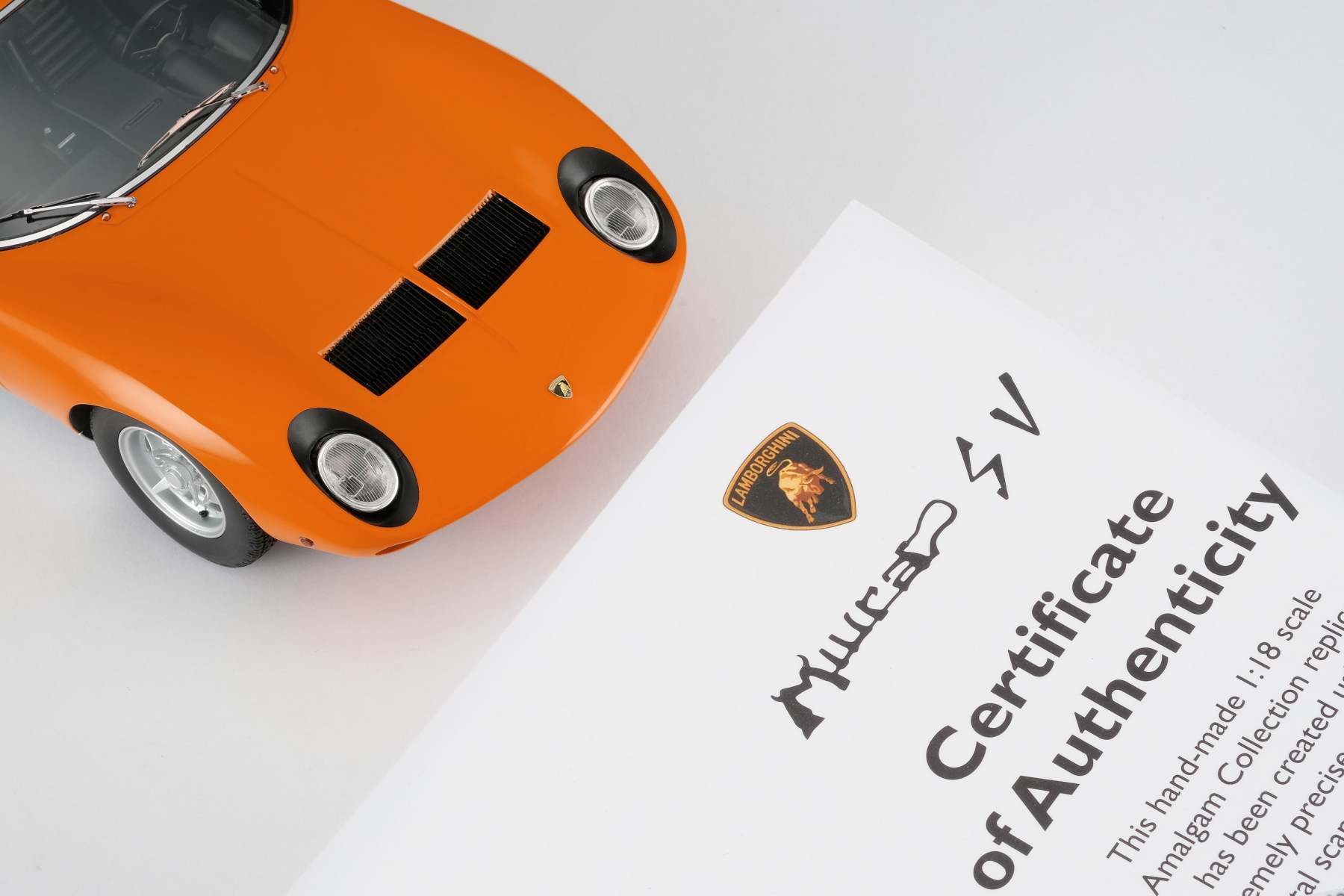 These perfect 1:18 scale models of the Lamborghini Miura P400 SV, available in Giallo, Verde Miura and Arancio Miura exterior paint scheme, have been handcrafted and finished in our workshops with the co-operation and assistance of Lamborghini regarding original finishes, materials, archive imagery and drawings. The use of supremely accurate digital scanning of the original car has allowed us to perfectly recreate every detail at scale. Furthermore, it has undergone detailed scrutiny by both engineering and design teams to ensure complete accuracy of representation. Every Amalgam 1:18 scale model is supplied in a luxury black presentation box and mounted on a carbon fibre or leather base protected by a clear acrylic dust cover. The model title, original branding and edition number are displayed on polished stainless-steel plaques mounted at the front end of the base.