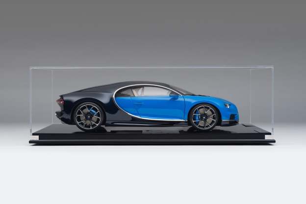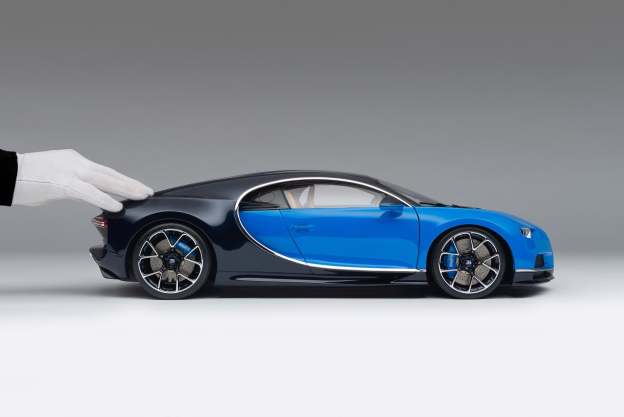 This fine model of the Bugatti Chiron is as launched at the Geneva Motor Show in 2016. The model has been handcrafted and finished in our workshops with the co-operation and assistance of Bugatti regarding original finishes, materials, archive imagery and drawings. The use of original CAD and supremely accurate digital scanning of the original car has allowed us to perfectly recreate every detail at scale. Furthermore, the prototype model has undergone detailed scrutiny by the manufacturer’s engineering and design teams to ensure complete accuracy of representation.