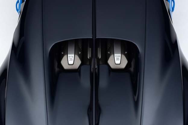 To reach its unprecedented levels of performance, the Chiron effortlessly merged its captivating beauty with sleek, muscular efficiency, creating a spectacular reinterpretation of the Bugatti design DNA. At the heart of the Chiron was its quad-turbocharged eight litre W16 engine. This unique masterpiece generated an incredible 1,500hp and 1,600 Nm of torque, with four high-performing turbochargers worked in a two-stage controlled configuration. A remarkable 60,000 litres of air were pumped through the engine every minute whilst, simultaneously, 800 litres of water per minute circulated through its core, guaranteeing the cooling of the engine to generate the extraordinary power. A new titanium exhaust system with reduced gas back pressure and lightweight materials, such as carbon fibre, maximised power and performance. The intelligent air intake management significantly improved aerodynamics and enhanced the cooling efficiency for engine and brakes, whilst the distinctive quad LED headlights also served as air intakes to the front brakes.